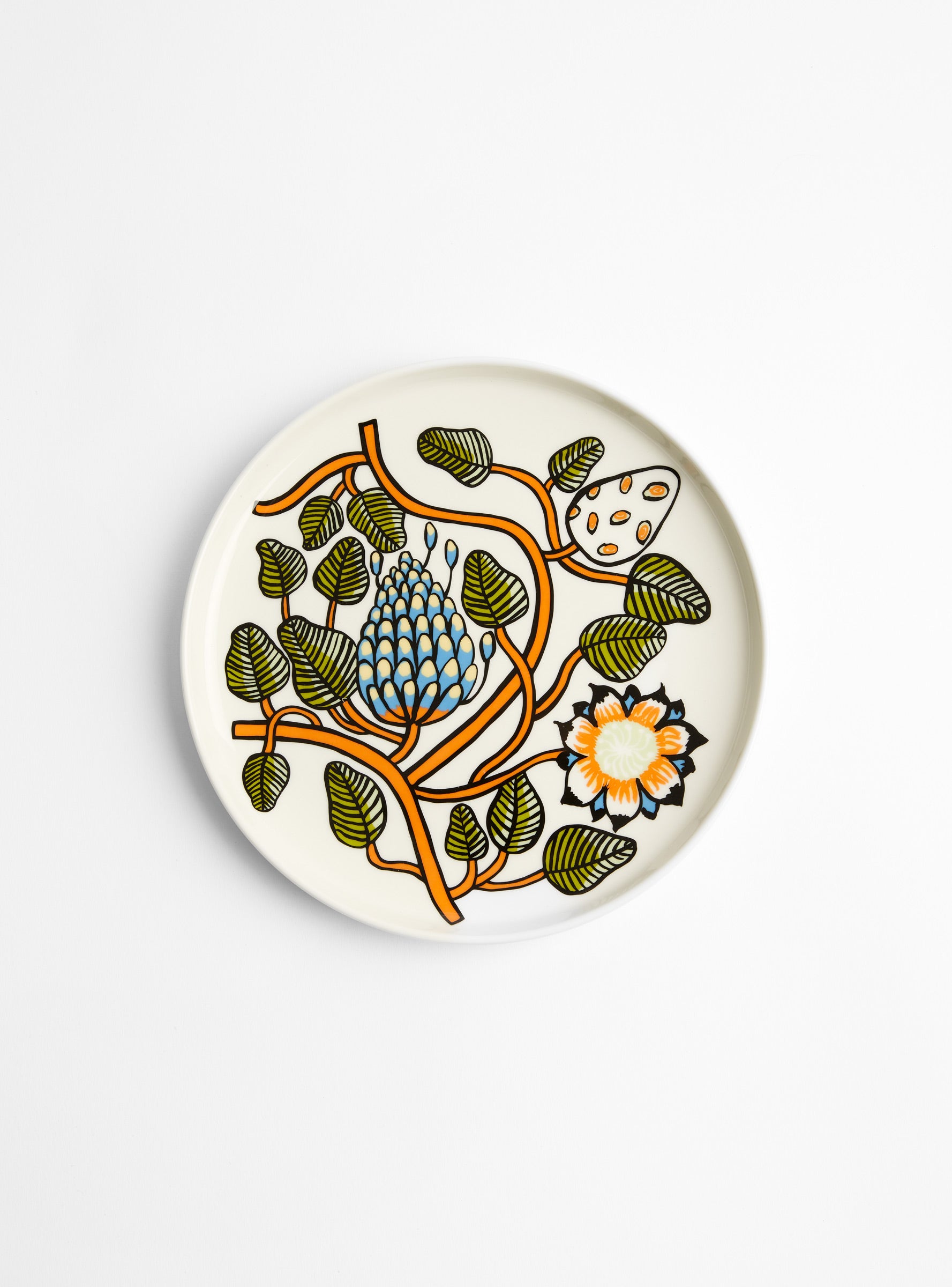 The Tiara Plate from Marimekko comes in a multi-coloured floral pattern and is made from white stoneware. It features Erja Hirvi’s exuberant floral Tiara decal, celebrating a variety of plants and flowers as nature’s crowning glory.