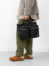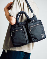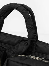 Iconic Japanese brands Toga and Porter Yoshida & Co. continue a series of incredibly sought after collaborations with the black Tote Bag. Made in Japan, the tote bag blends Porter's commitment to functional luggage with subtle, yet distinctive, detailing courtesy of Toga. The two front zip pockets feature a central compartment, as well as front slip pockets which are closed by zips adorned with Toga's iconic metal embellishments. The main compartment features a rear slip pocket, both of which are closed by a Toga press-stud fastening. A wrap effect handle as well as a detachable shoulder strap offer multiple transit options.