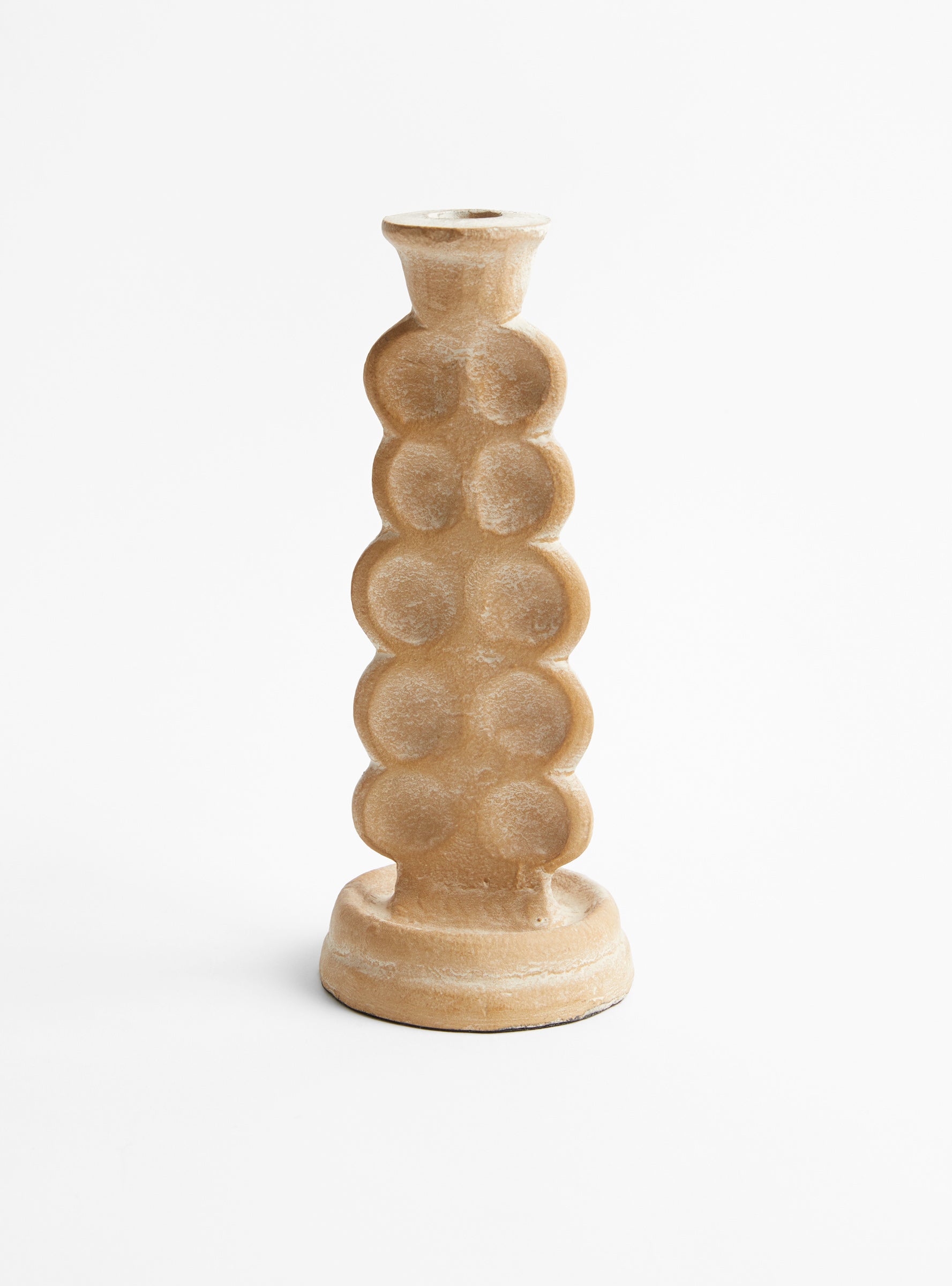The Totem Candle Holder from Pomax features a tall, sculpted design with organic lines, offering a striking yet stable piece for your home. Crafted from aluminium, it combines durability with a lightweight structure.