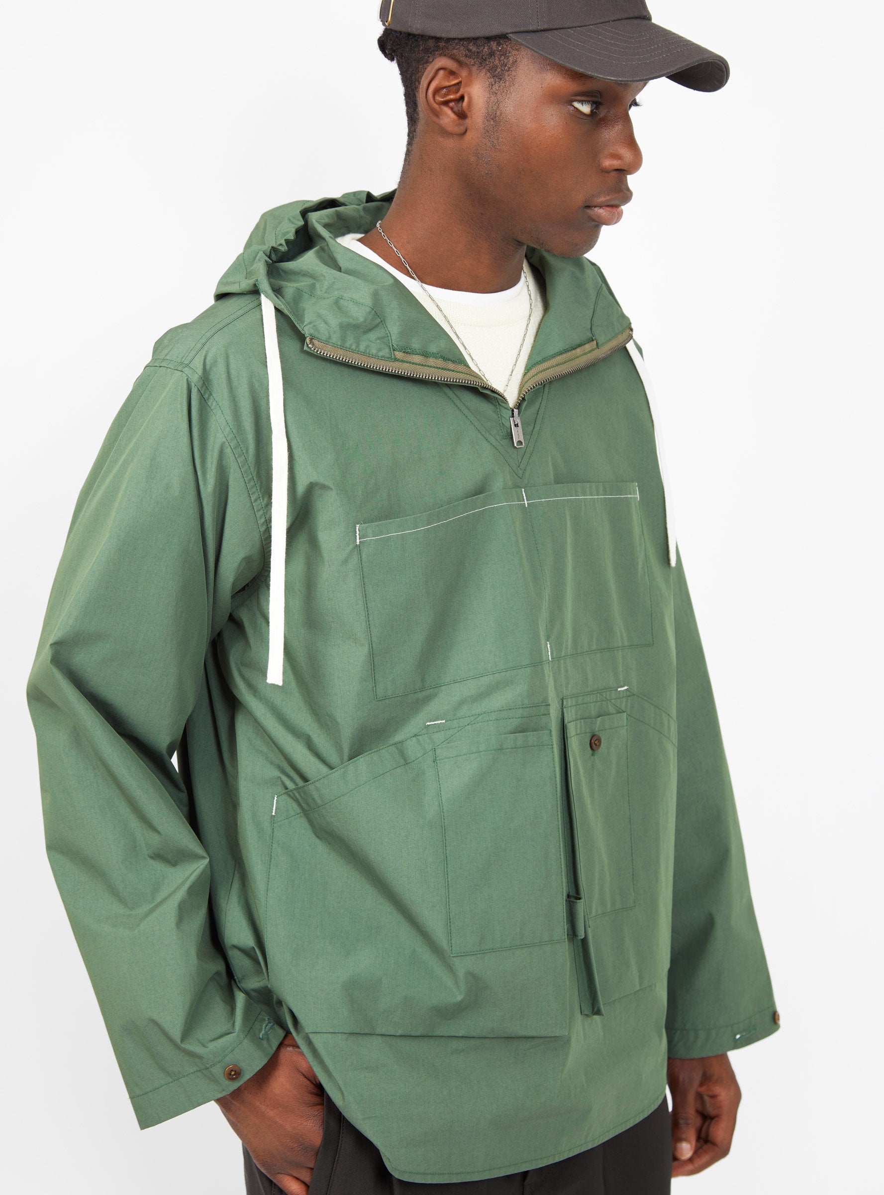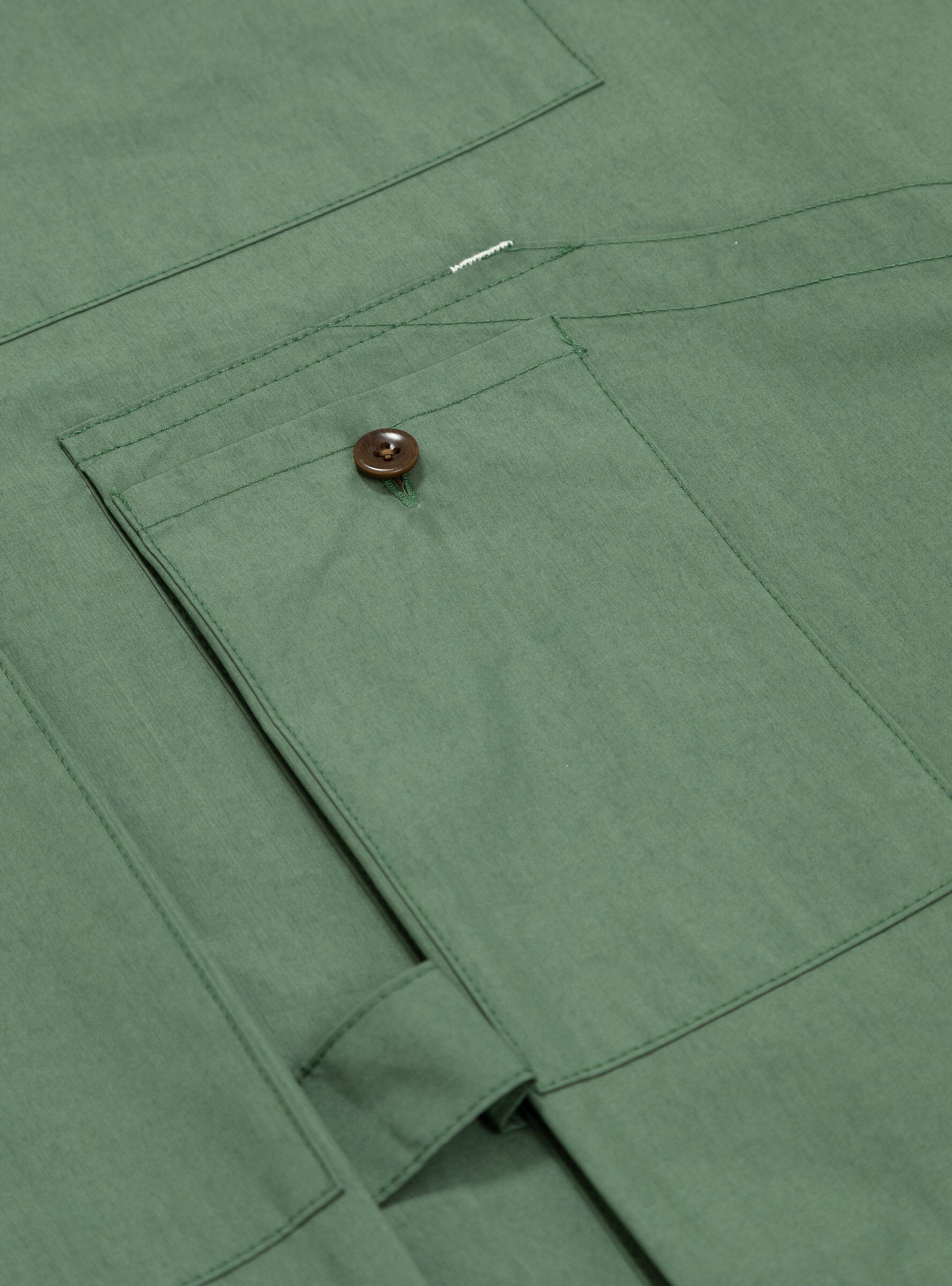 Made from cotton and nylon-blend poplin, which is both lightweight and water-repellent, this cedar-green Trek smock from Garbstore's SS24 collection is cut to a relaxed silhouette with dropped shoulders, a curved hem and a selection of patch pockets.