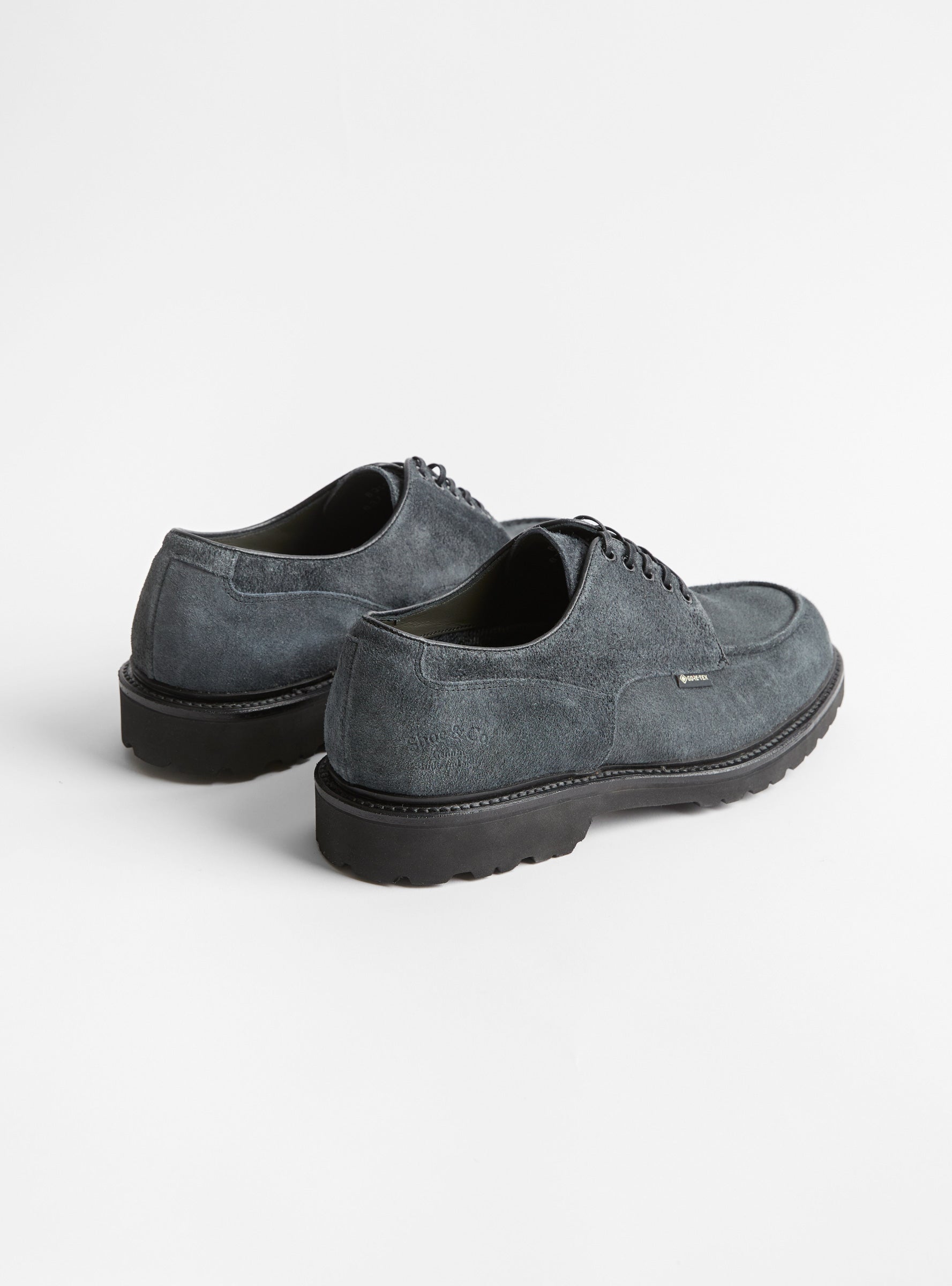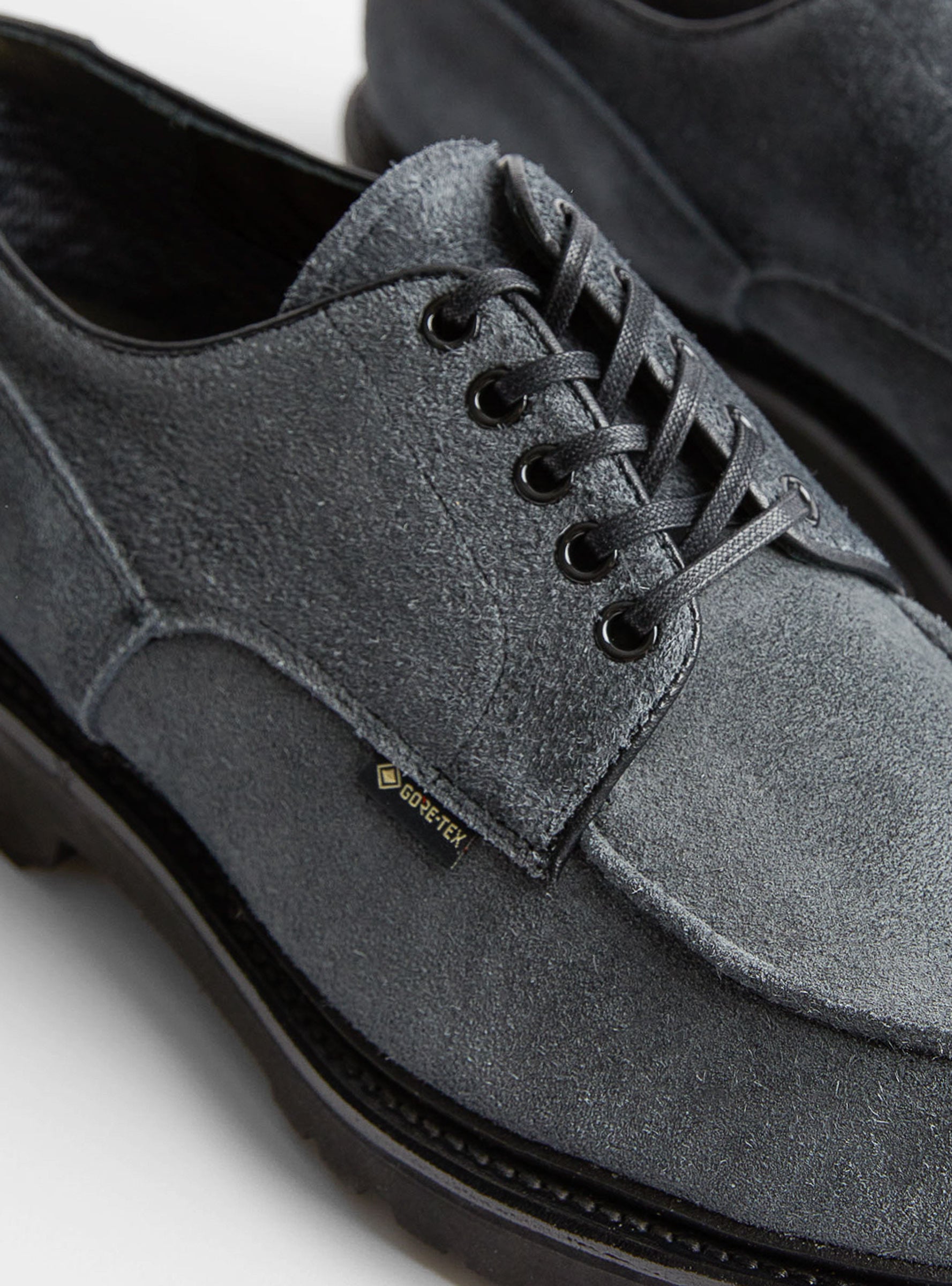 The U-Tip GTX Derby from REGAL Shoe & Co. arrives in Grey Suede. This U-tip derby features a soft kip leather upper in grey suede and a breathable, waterproof GORE-TEX lining for all-weather wear. The shoe is built with a Goodyear welt construction and a lightweight Vibram Newflex sole that provides excellent cushioning, while an Ortholite layer between the insole and midsole ensures additional comfort and support.
