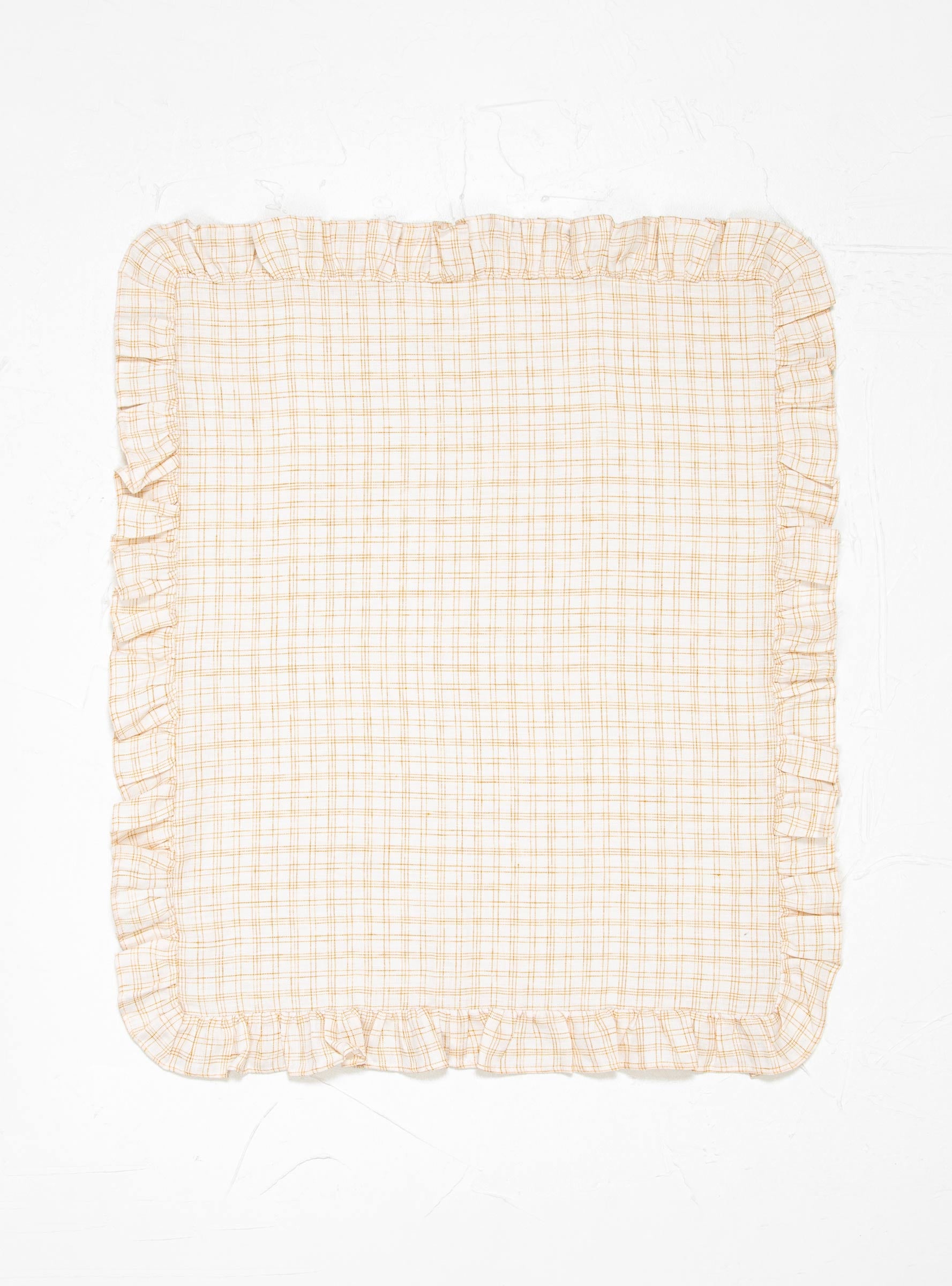 The Vanukas Tea Towel from Projektityyny comes in an off white and orange check. The classic style tea towel is finished with frilled edges.