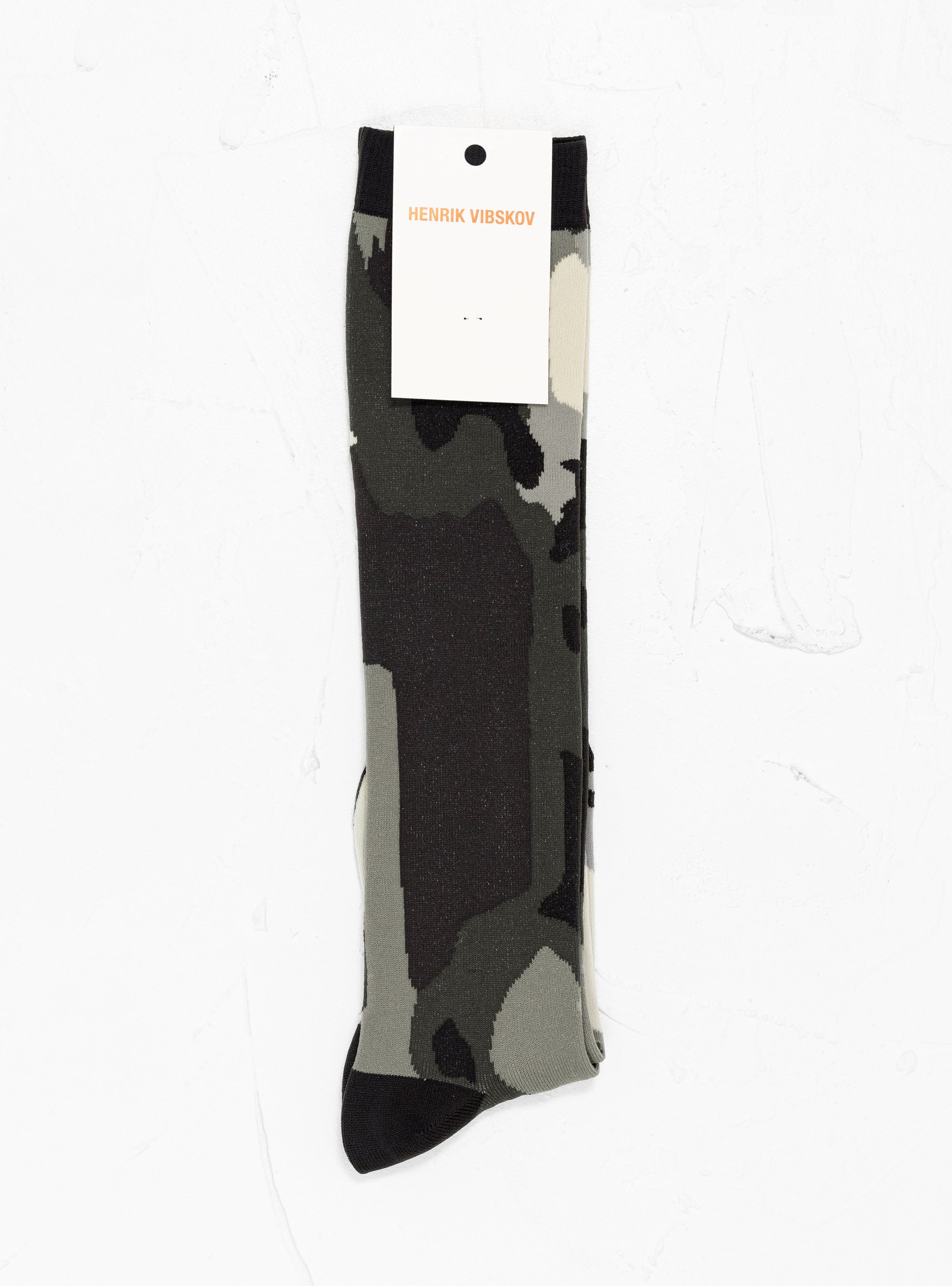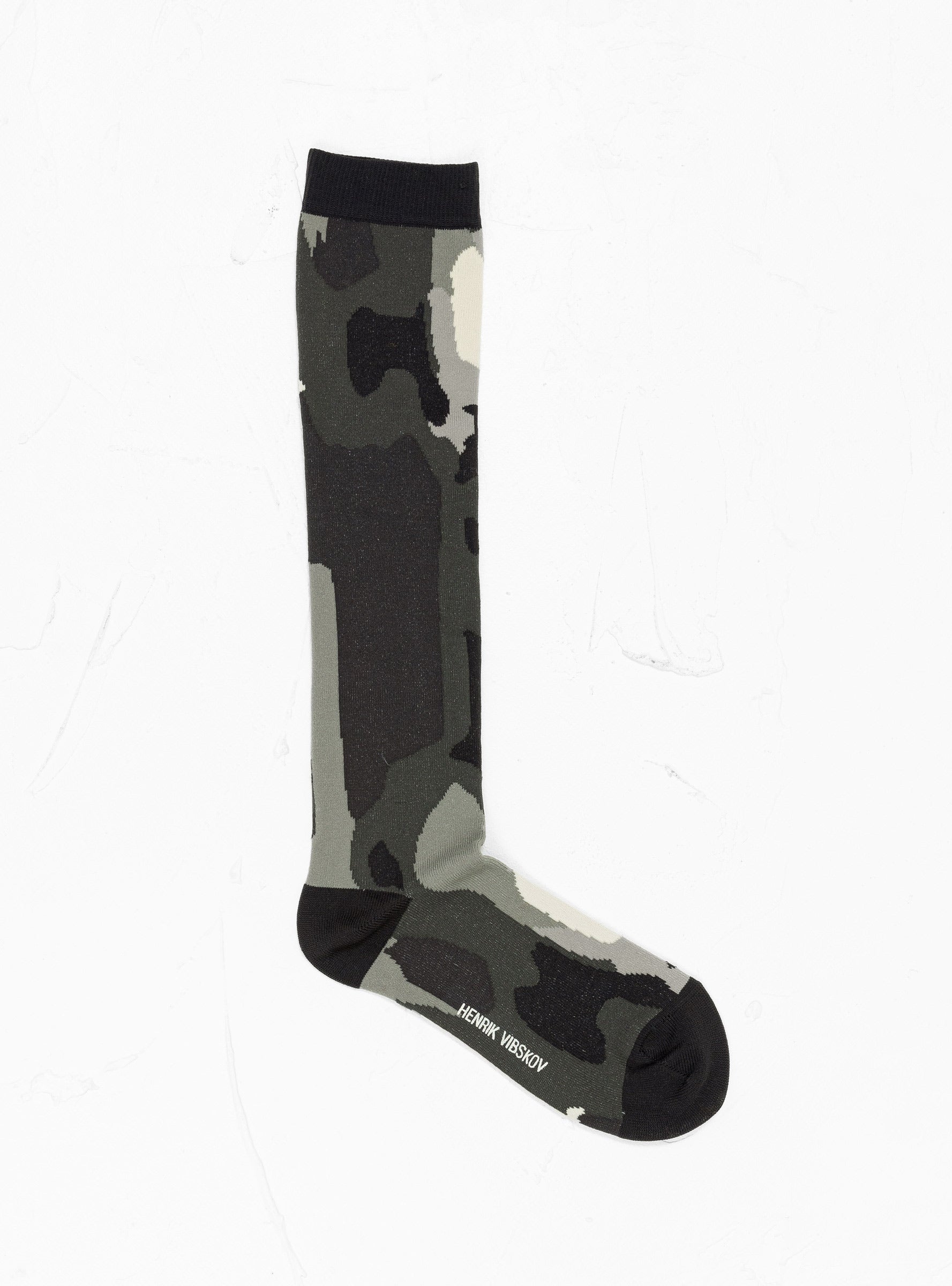 These transparent, knee length socks are made in Portugal and are printed with an abstract black and white print with ribbed edges and plenty of stretch for comfort.