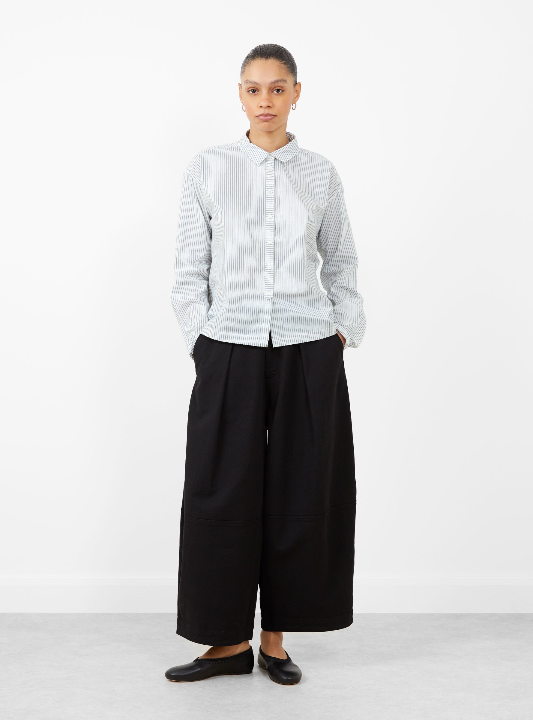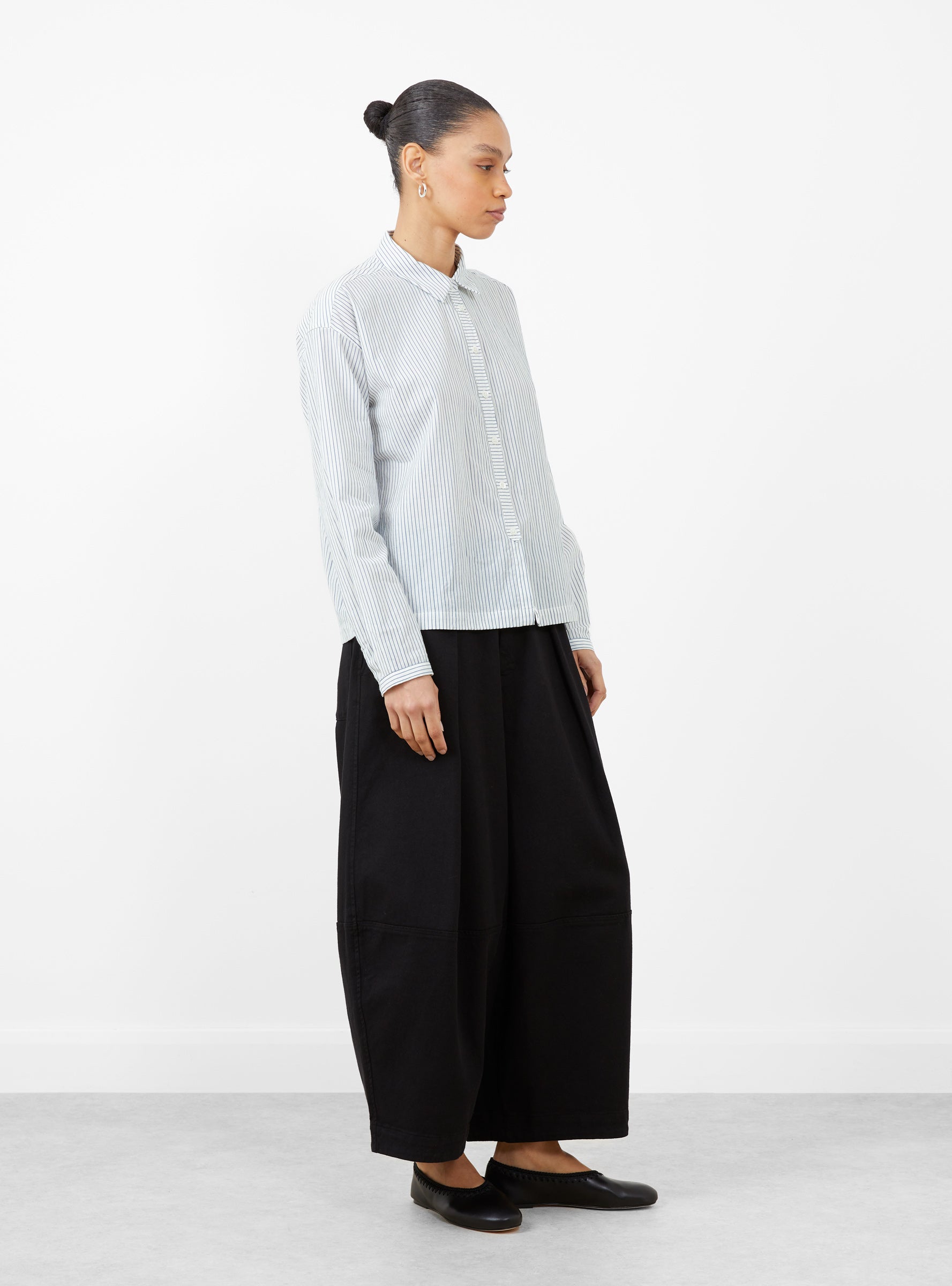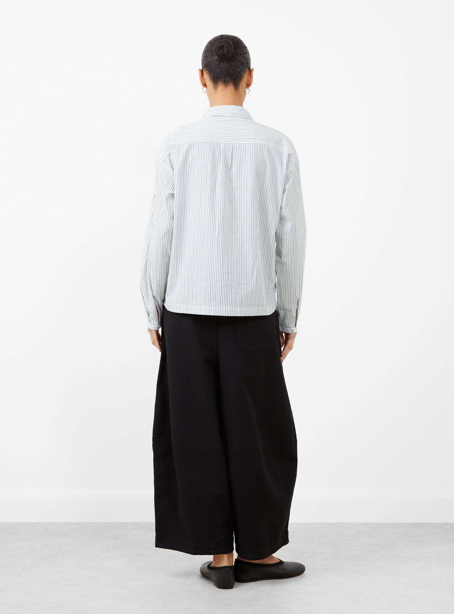 - Mill-washed Japanese pinstripe cotton