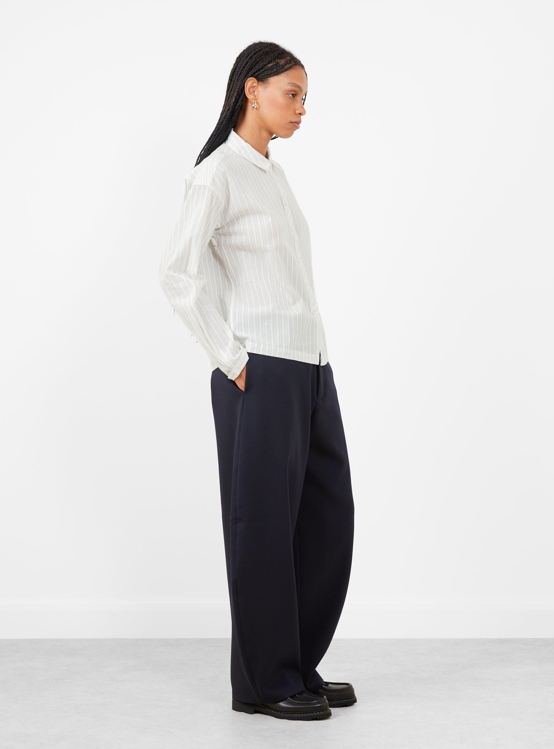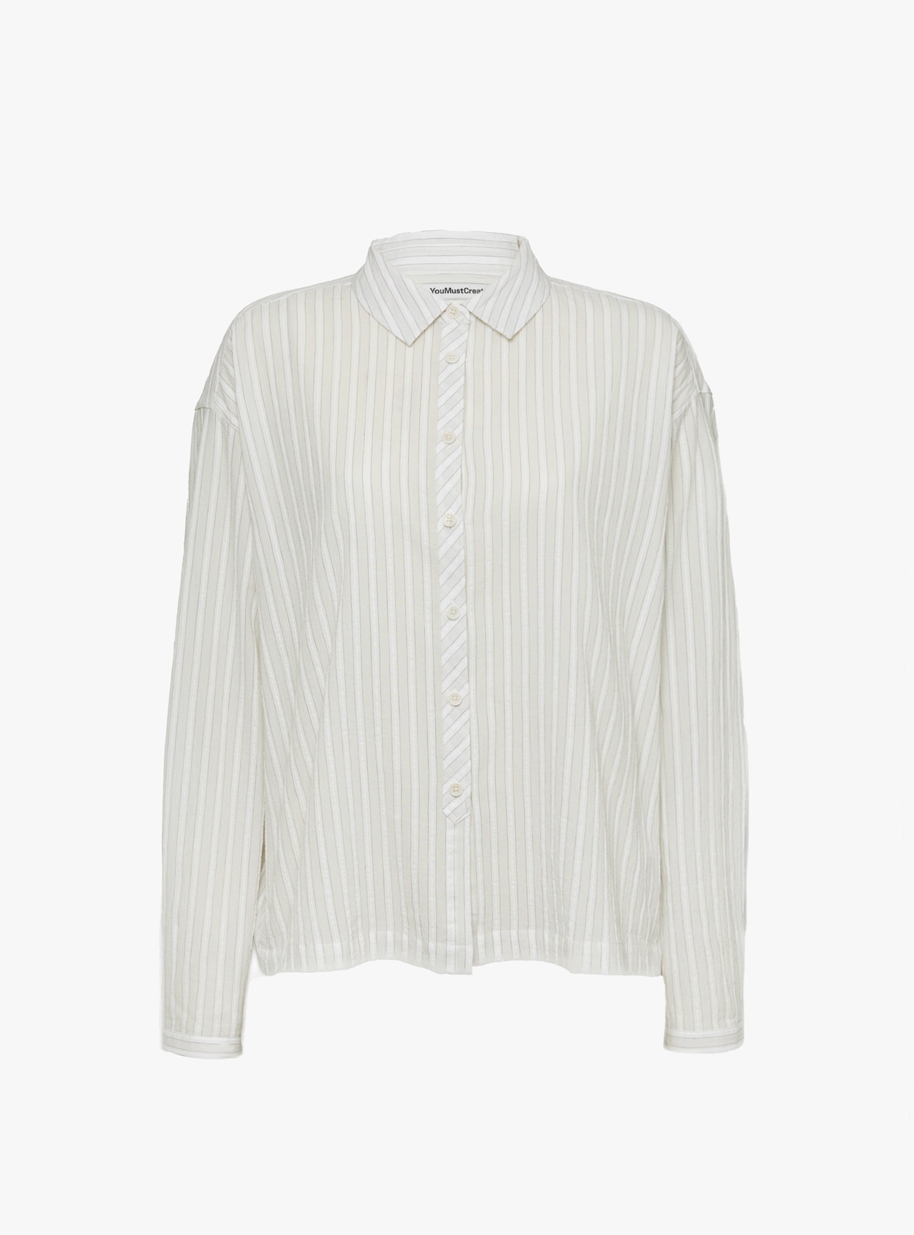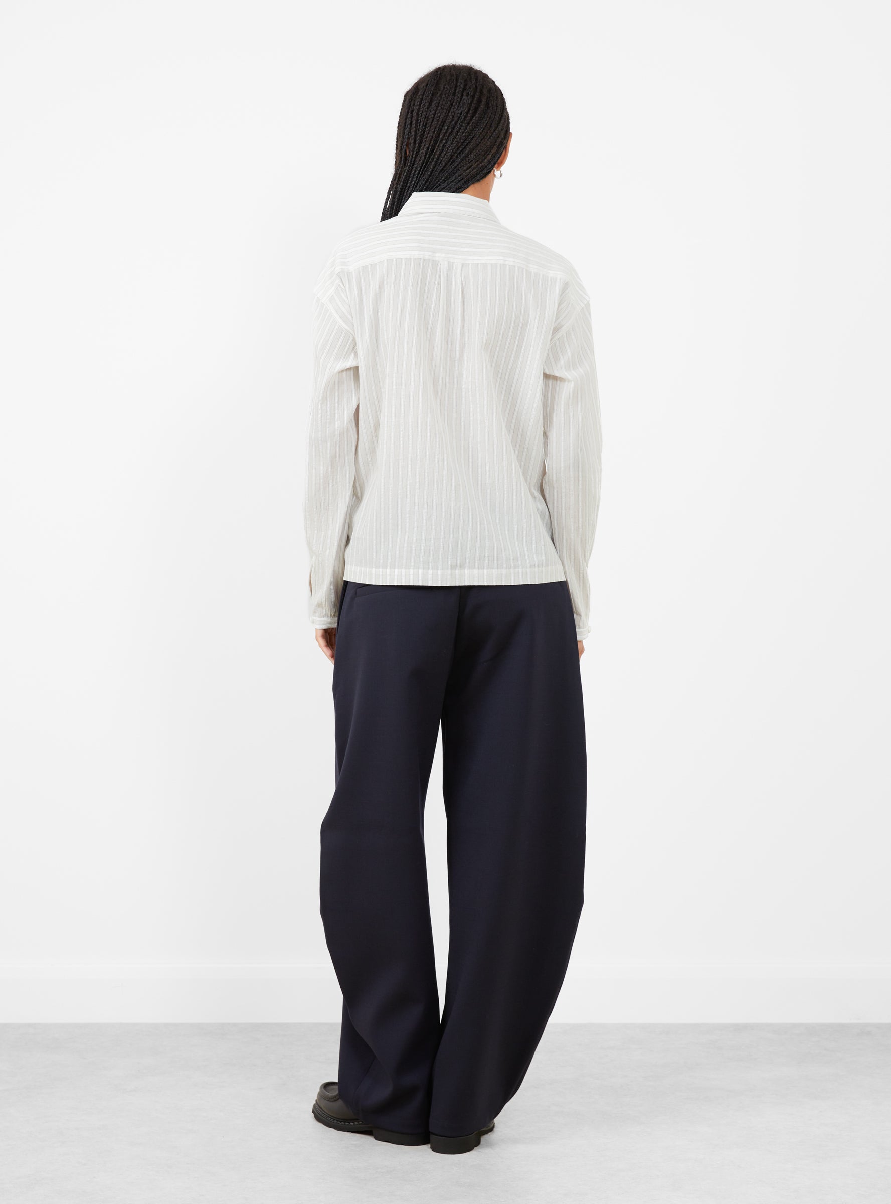 The Marianne Long Sleeve Shirt by YMC is made from Japanese mill-washed pinstripe cotton with a soft textured finish, and cut to a regular fit. Featuring a two-piece collar and bias-cut front placket, the shirt fastens with corozo buttons through the front.