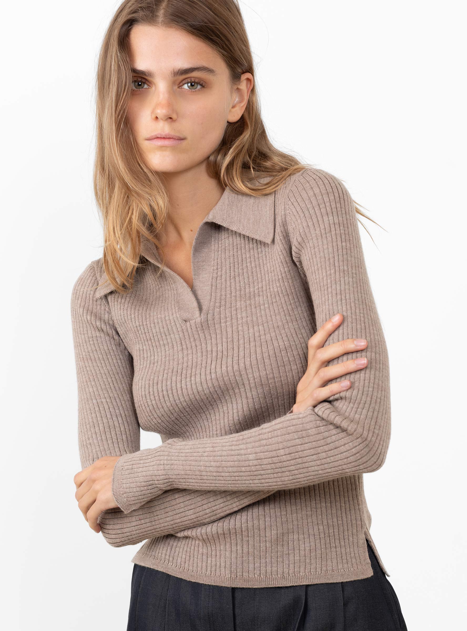 The Open Placket Knit Polo from mfpen arrives in Oatmeal, knitted in Portugal from fine Italian merino wool. Designed with a slim fit and slightly dropped shoulders, it features a spread collar, open placket, and subtle sleeve slits. A 4x2 rib knit runs throughout the body for texture and structure.
