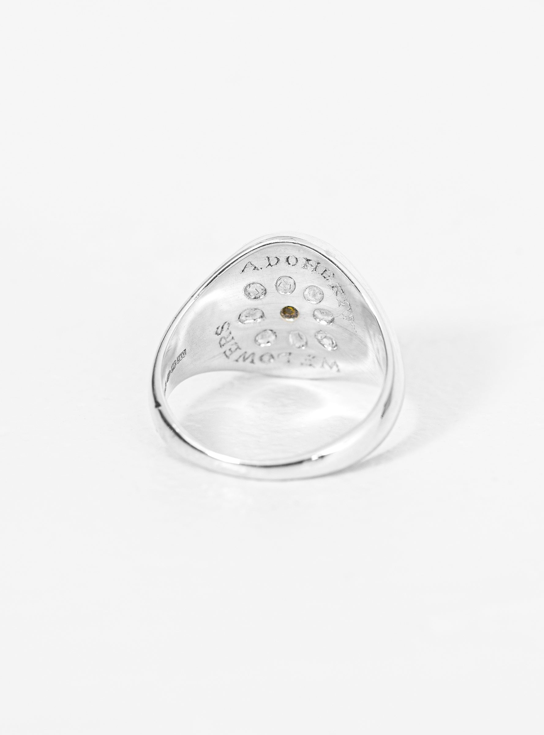 Crafted from reclaimed sterling silver in London's jewellery district Hatton Garden, Alec Doherty's Wallflower ring brings some wit and charm to your jewellery collection. This whimsical piece is inspired by Doherty's childhood, and is a continuation of his practice as an illustrator. Let it stand out on its own or wear it stacked with other tonal pieces.