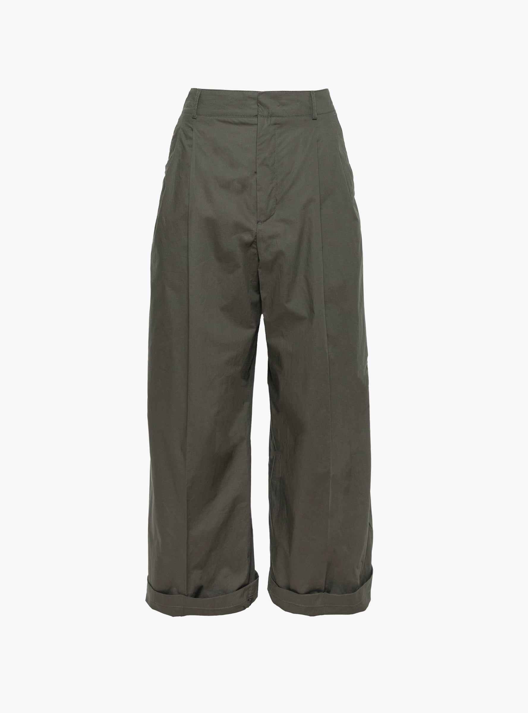 The Watson Trouser from Soeur comes in Anthracite Grey and is made from organic cotton poplin, cut to a high waisted wide leg silhouette. The design features a clean zip fly with hook fastening and an inner reinforcing button. Italian front pockets and welt pockets at the back keep the look streamlined, while a pressed crease along the leg adds structure and definition.