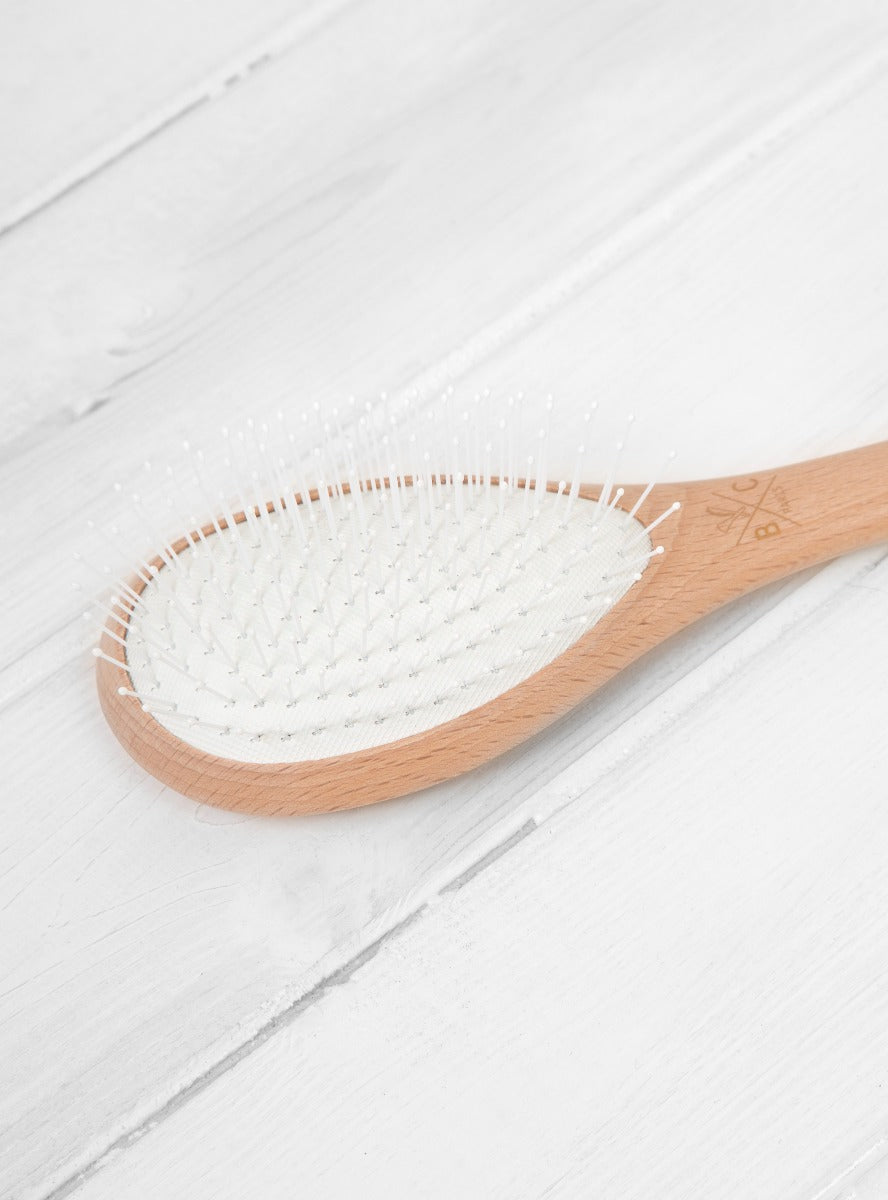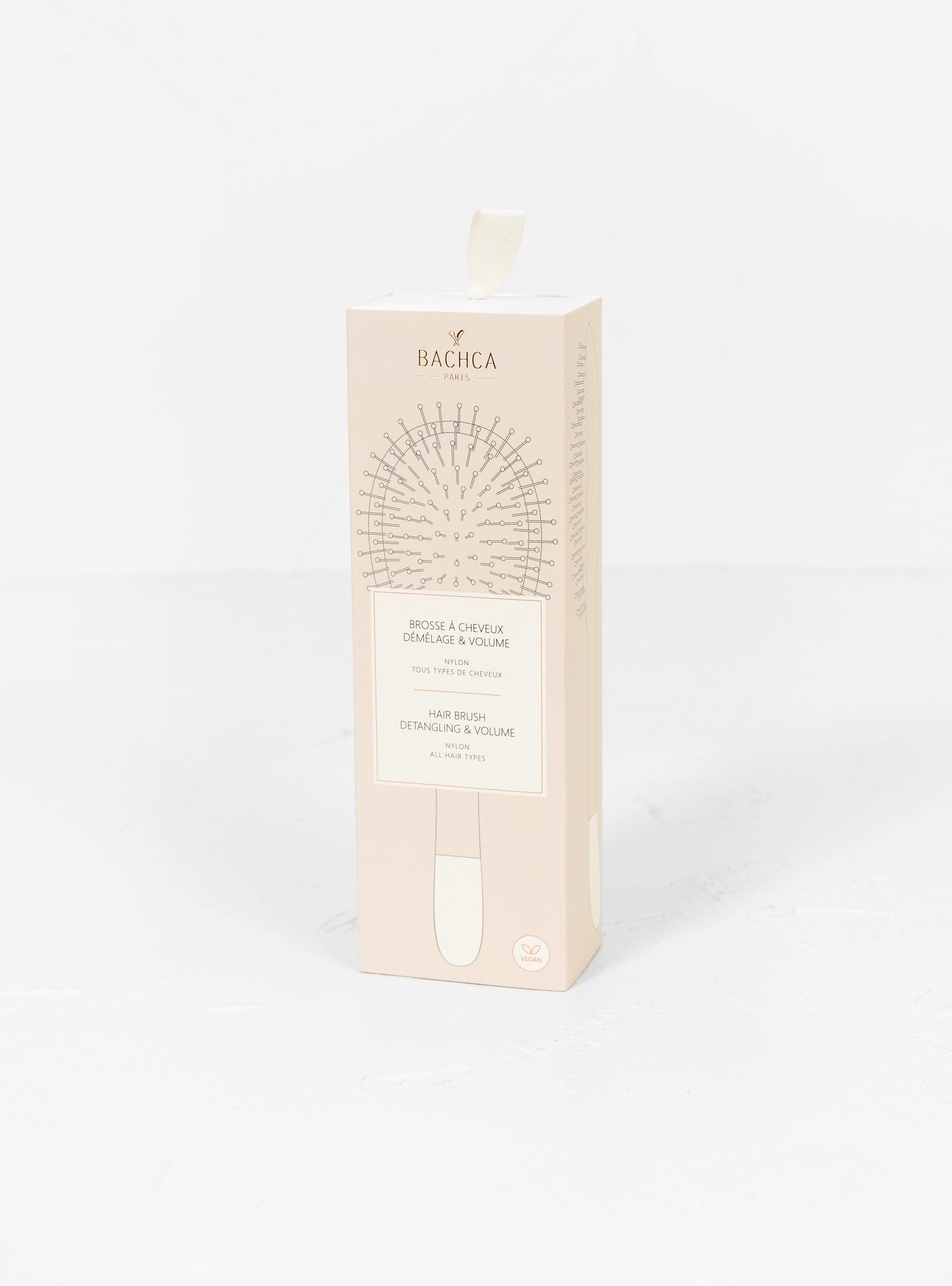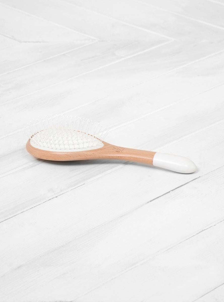 Suitable for all hair types, the Wooden Detangling Brush from Parisian brand Bachca has flexible nylon pins that detangles hair with ease and avoids breakage. The ball tip pins are sat on a rubber cushion that products and massages the scalp.