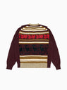 Made from chunky wool-blend yarn, this dark-red cardigan from TOGA VIRILIS is knitted to a relaxed silhouette with dropped shoulders and features textured jacquard panelling framing the V-neck and placket.